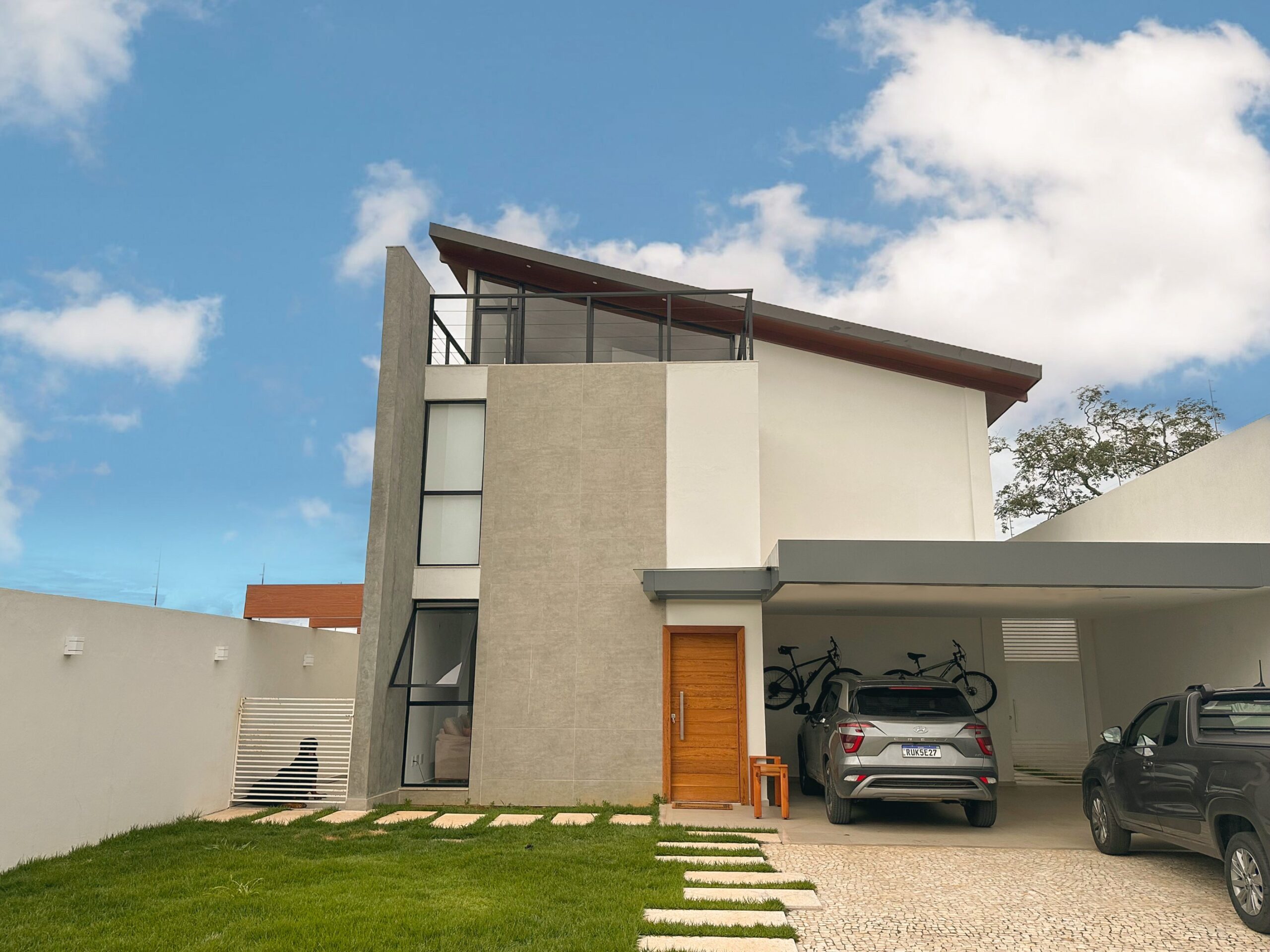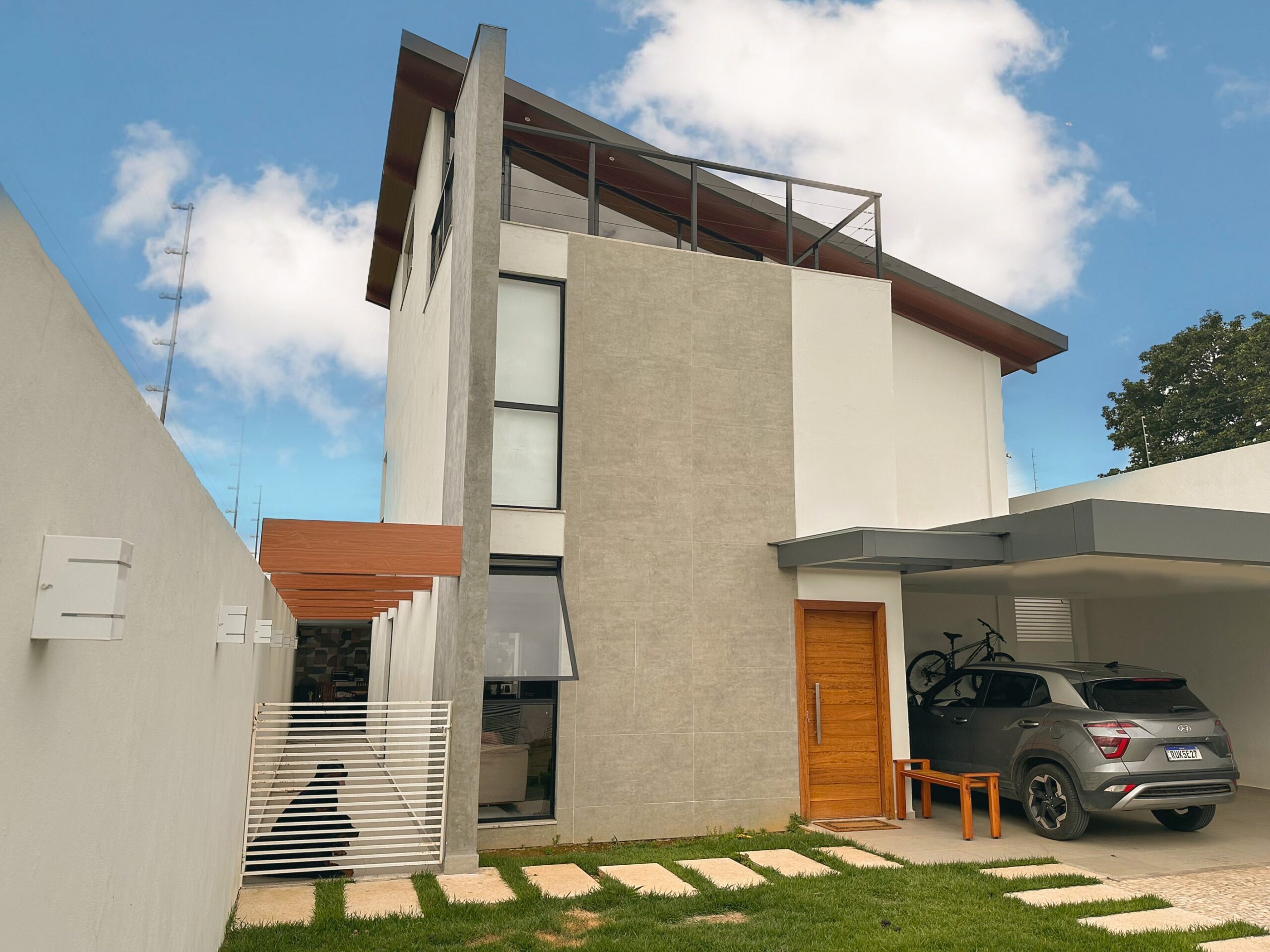 LINGUAGEM MODERNA E PÉ DIREITO GENEROSO Uma casa de refúgio, localizada em um ponto alto da cidade e projetada com foco na contemplação da vista. A estrela da volumetria é a cobertura, que coroa o belo terraço no terceiro pavimento.